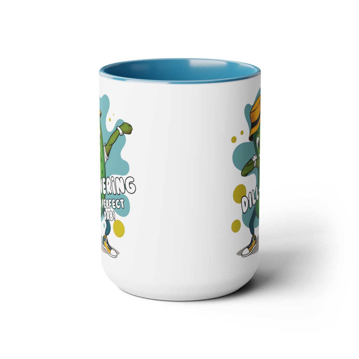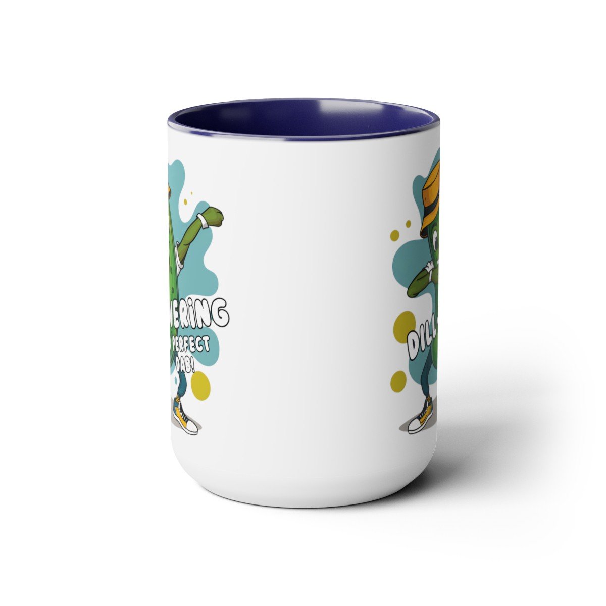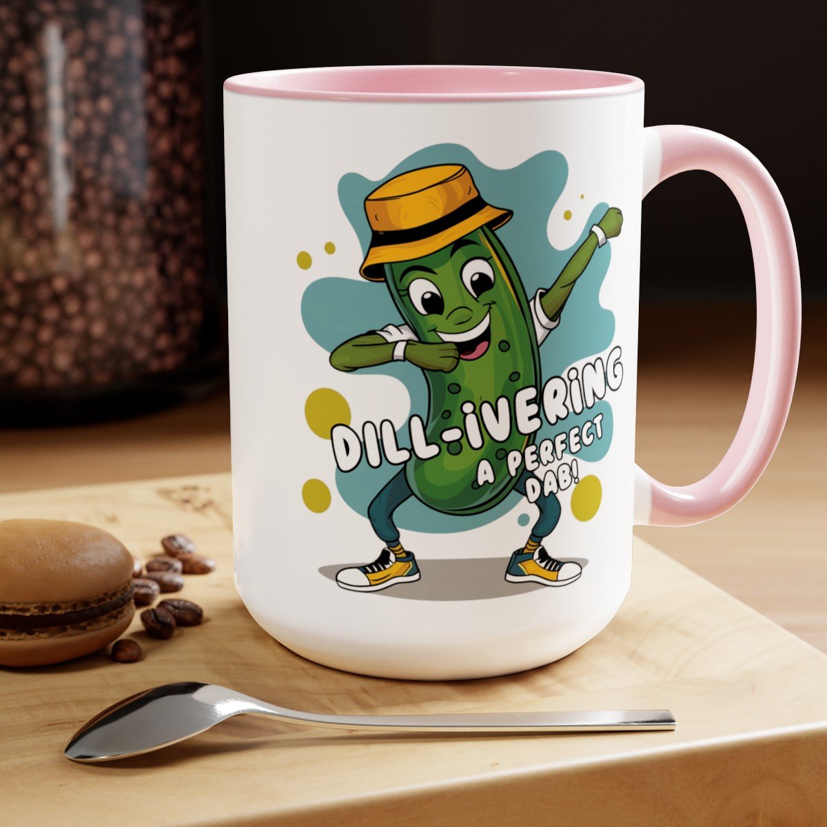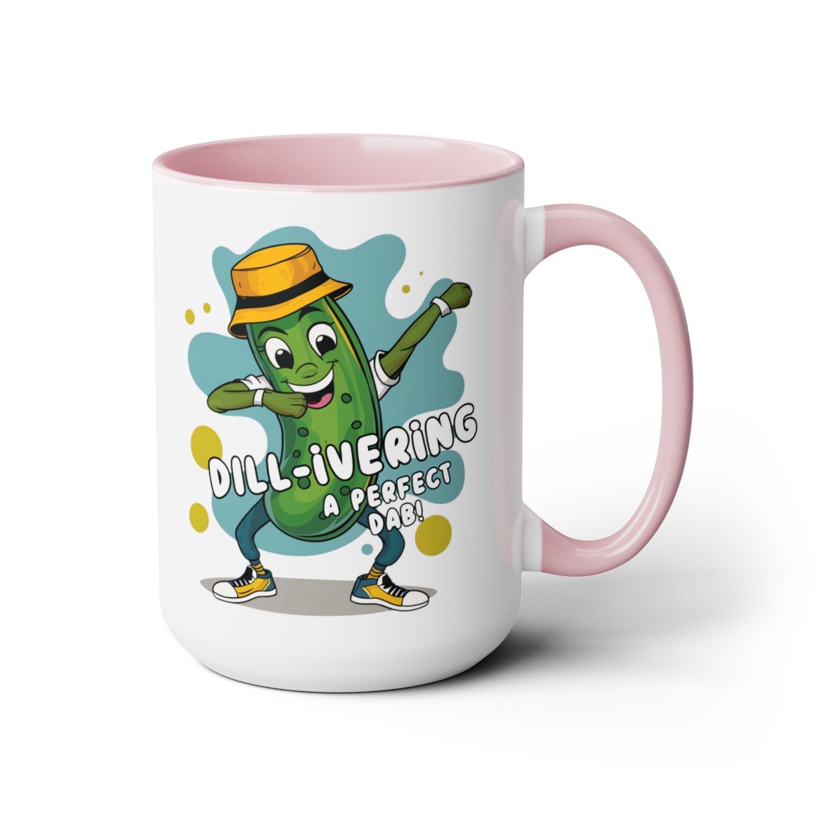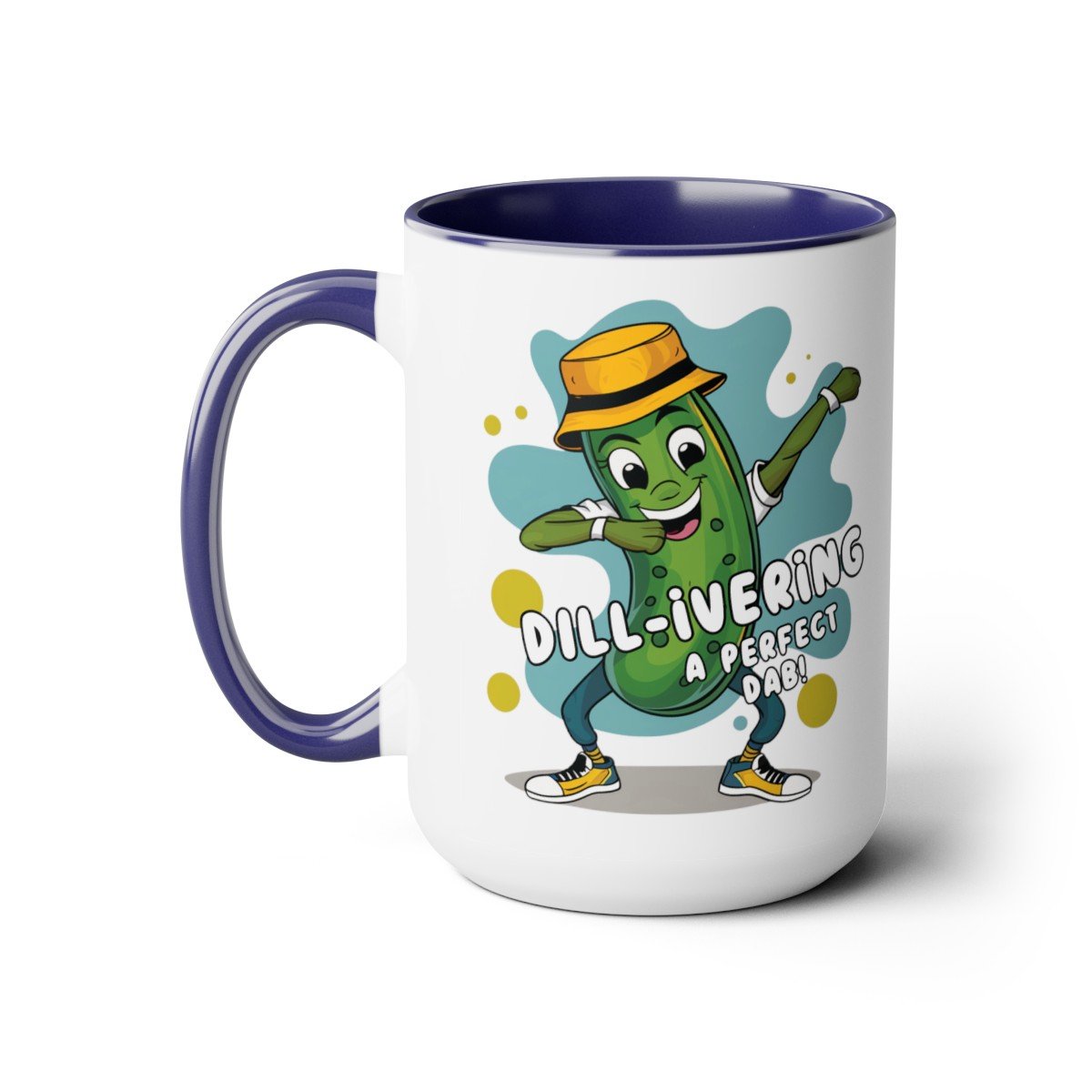 DILL-ivering A Perfect Dab – Dabbing Dance – Pickle Puns – Choice of Colors – Two-Tone Coffee Mugs, 15oz.