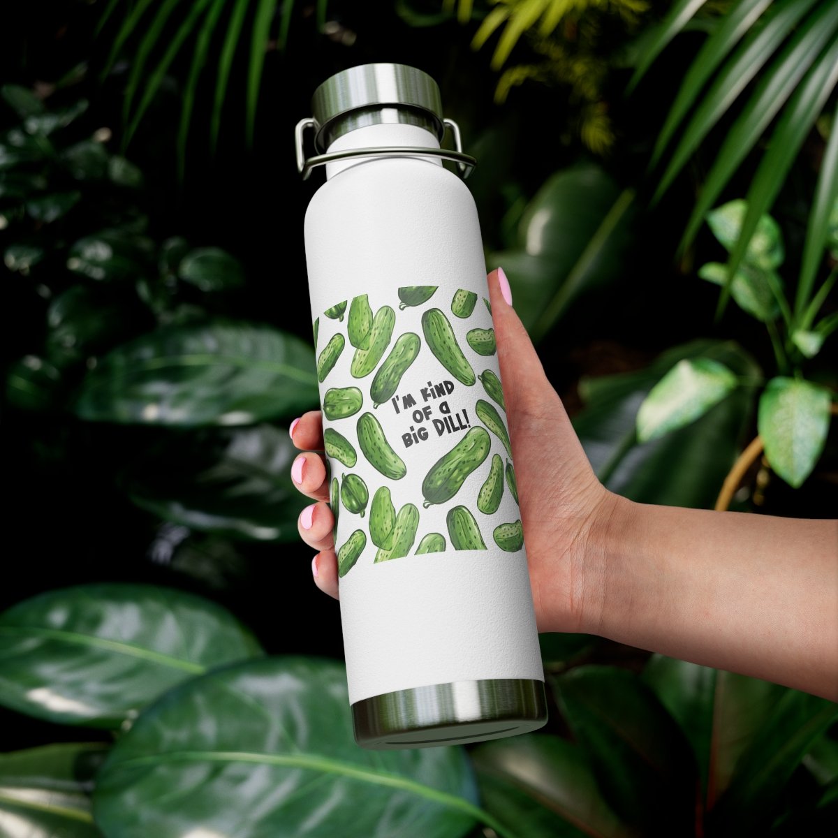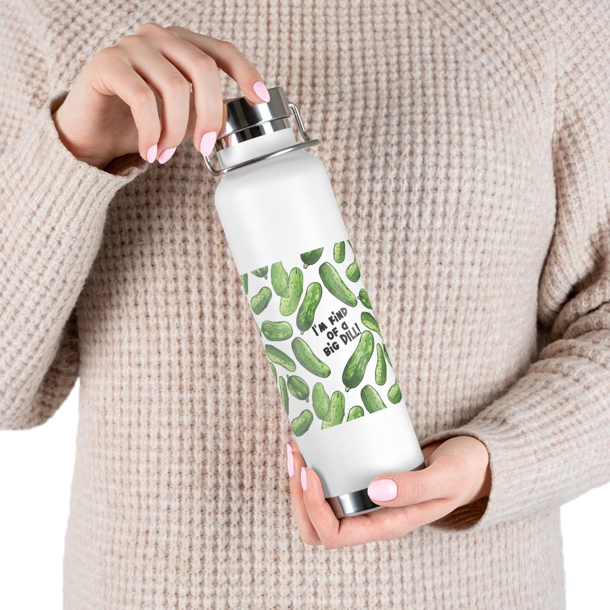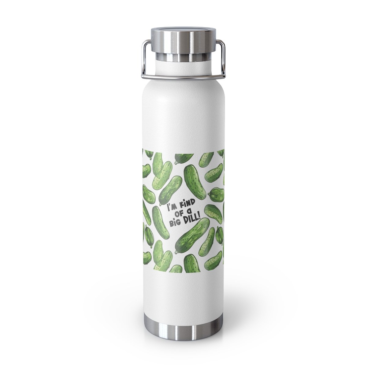 I’m Kind of a Big Dill – Green Pickles – Black Text on White – Copper Vacuum Insulated Bottle, 22oz.