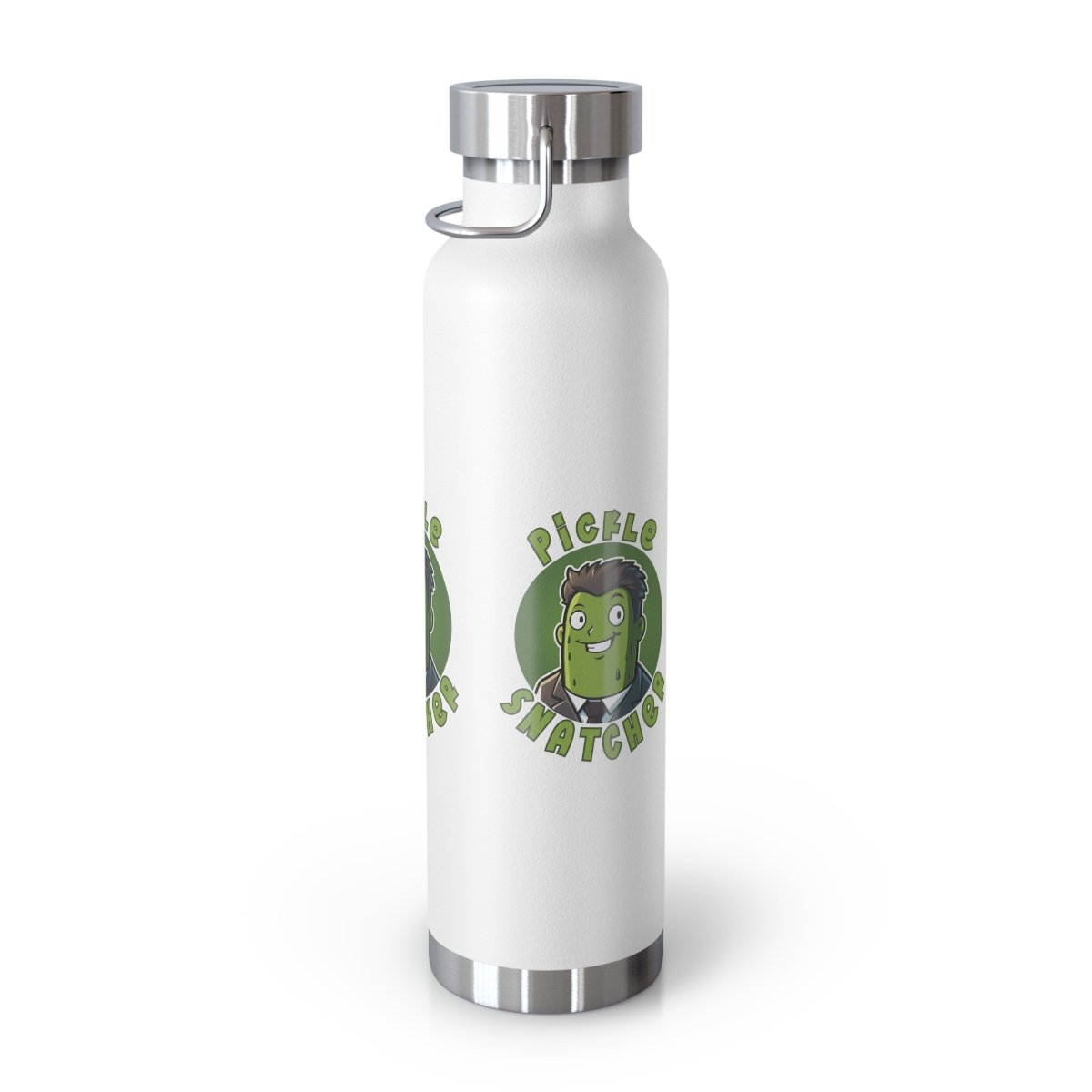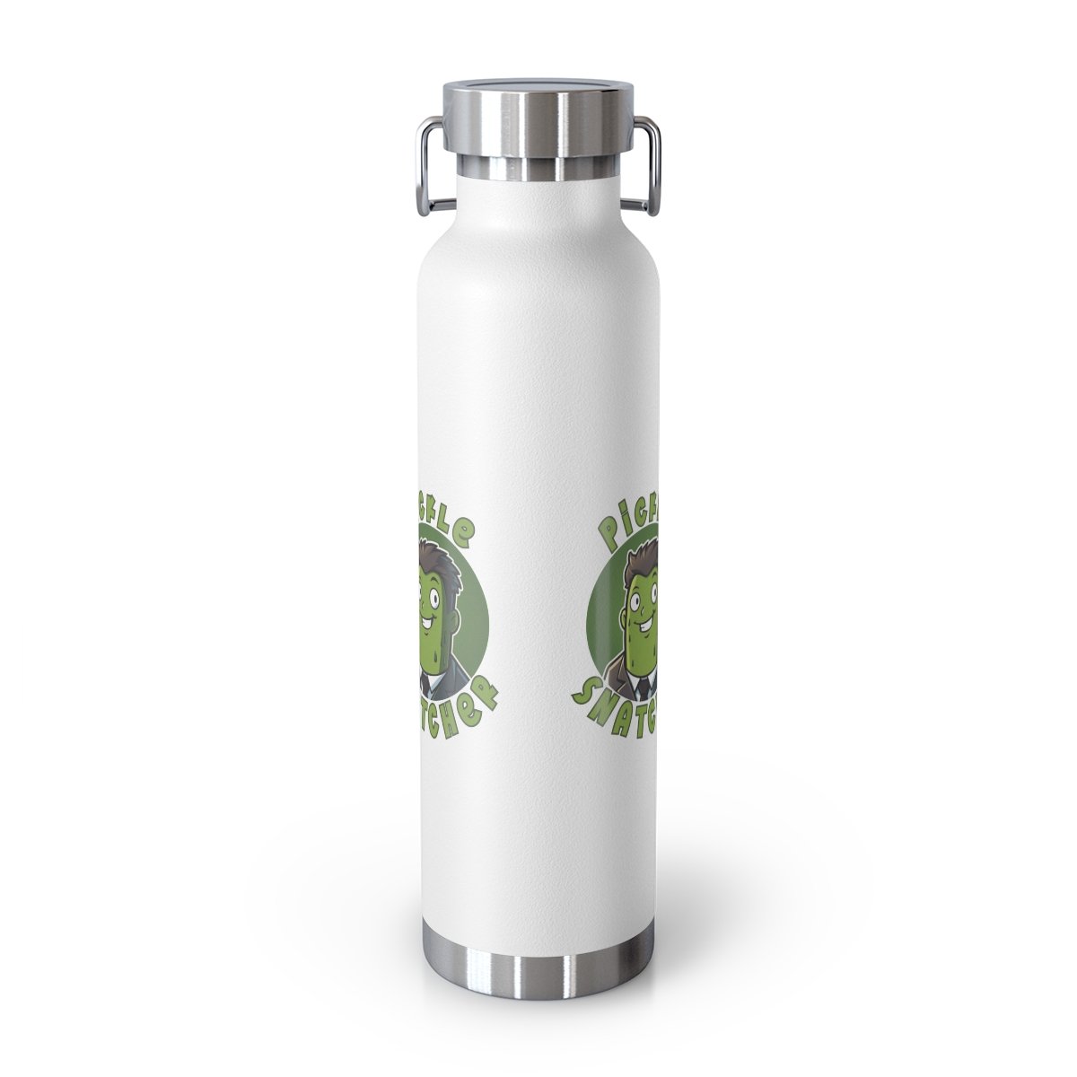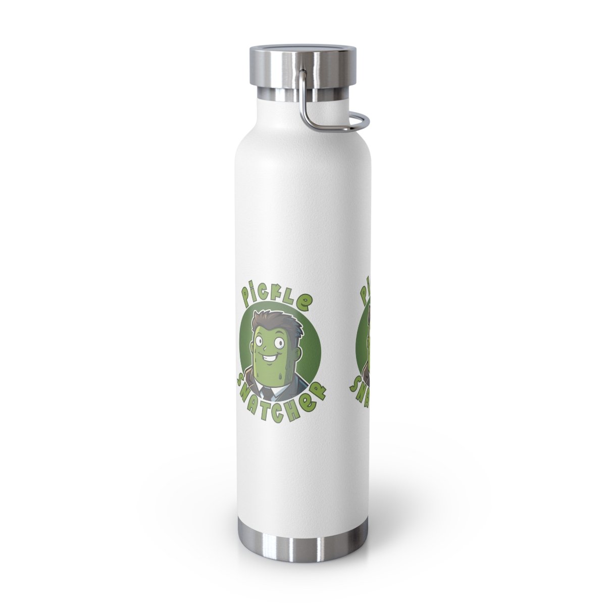 Pickle Snatcher – Thief – Fan – Green Pickles – Green Text on White – Copper Vacuum Insulated Bottle, 22oz.